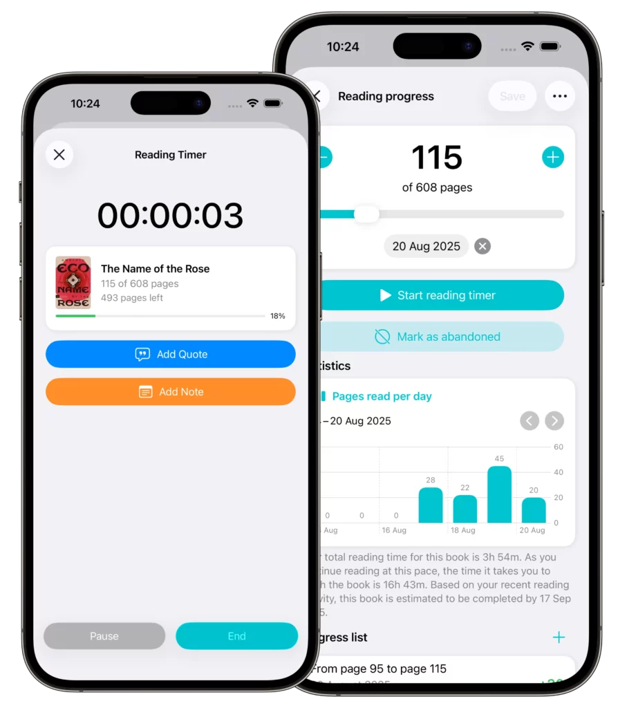 Book Tracker is a truly native iOS and macOS app that fully leverages the Apple ecosystem. Use Shortcuts, Siri, and Live Activity to manage your reading timers quickly.