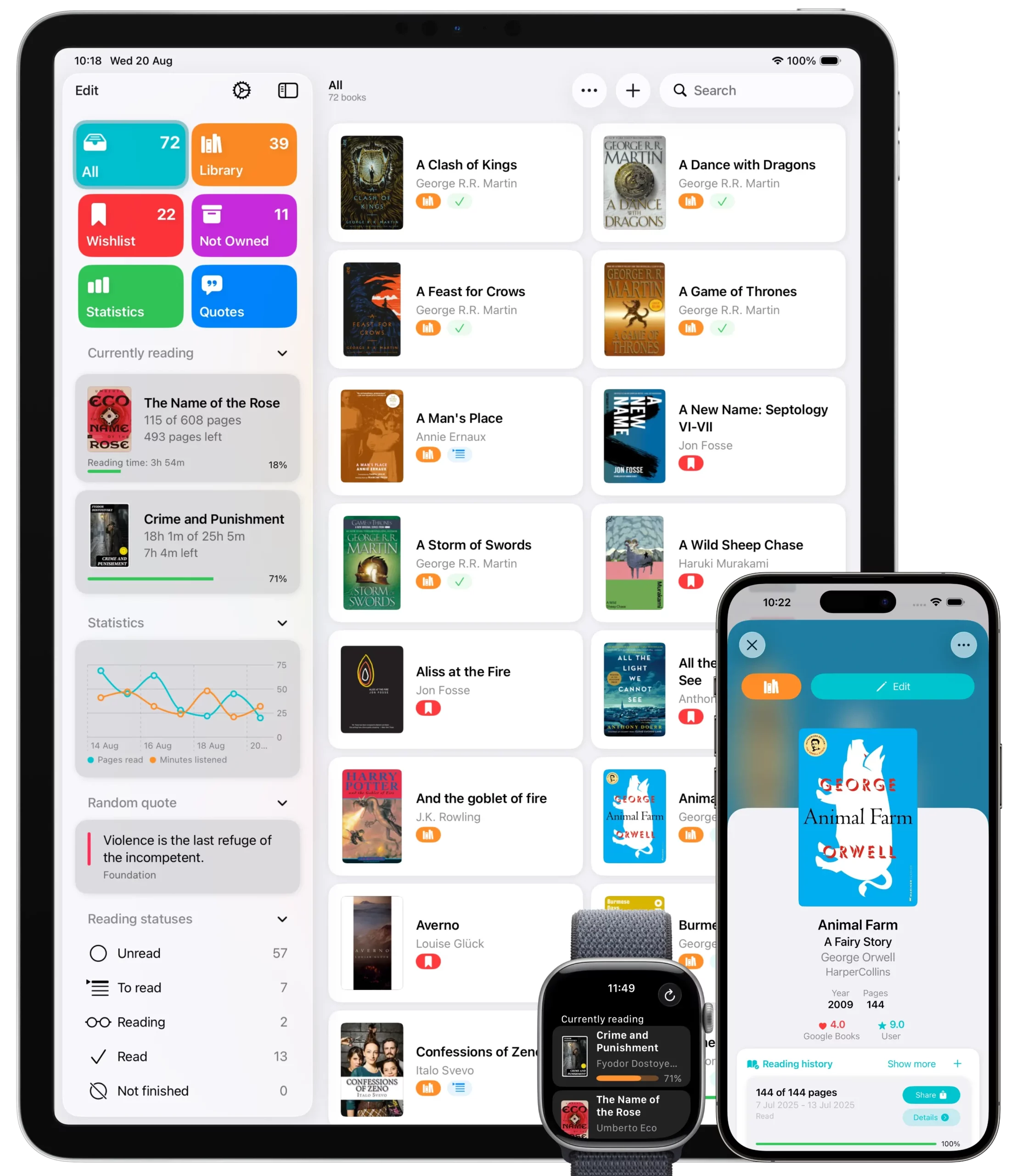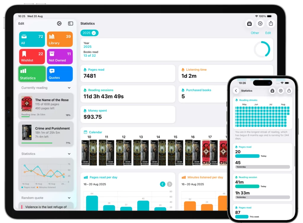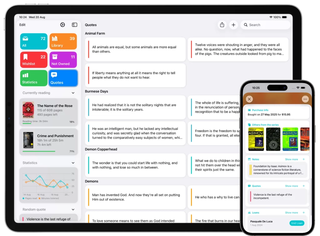 Your entire book library, wishlist, and reading list stay perfectly synchronized on every device. Add a title on iPhone, and it’s instantly available on iPad and Mac.