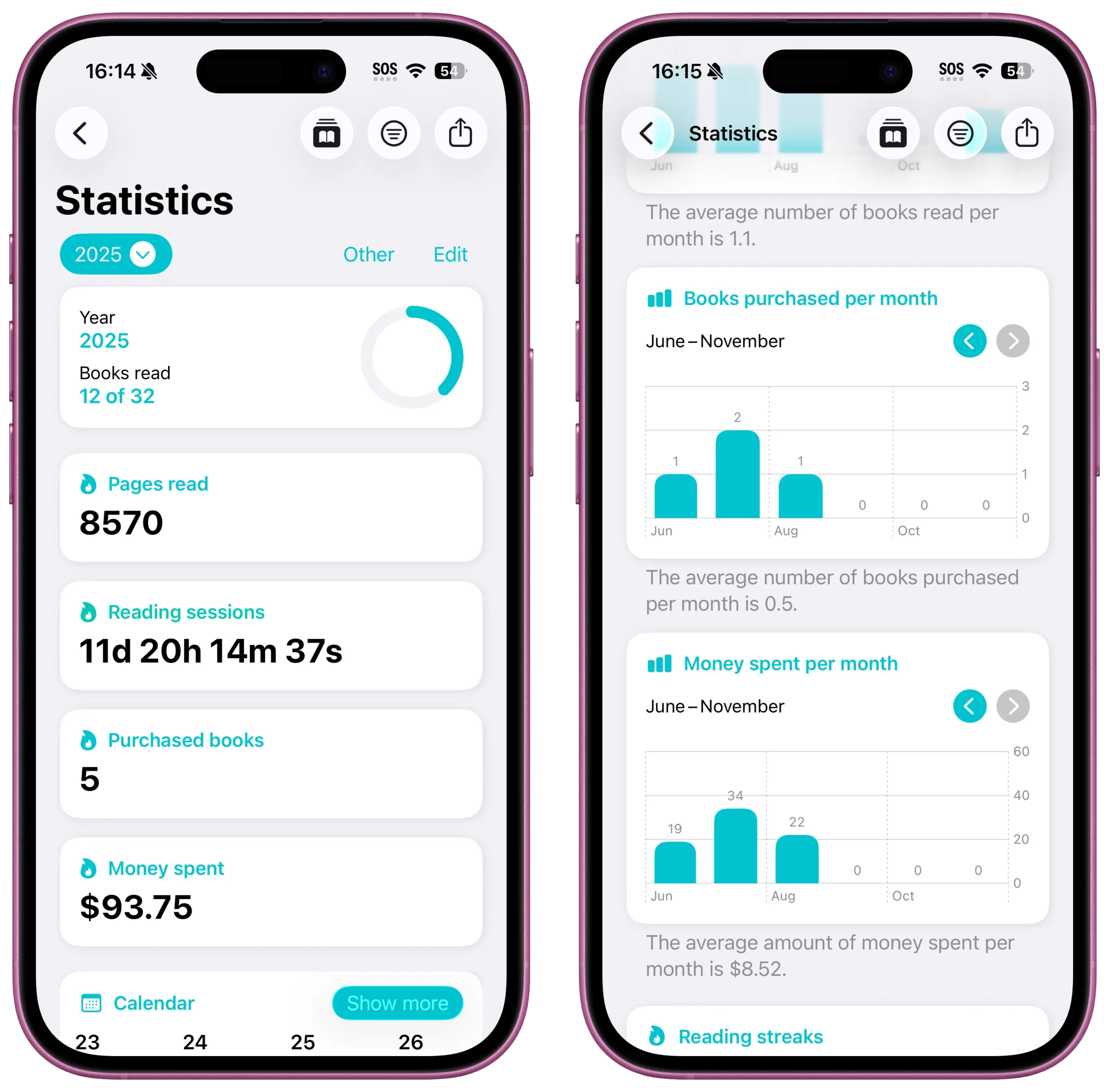 - Books Purchased: The total count of new arrivals (distinct from books read).