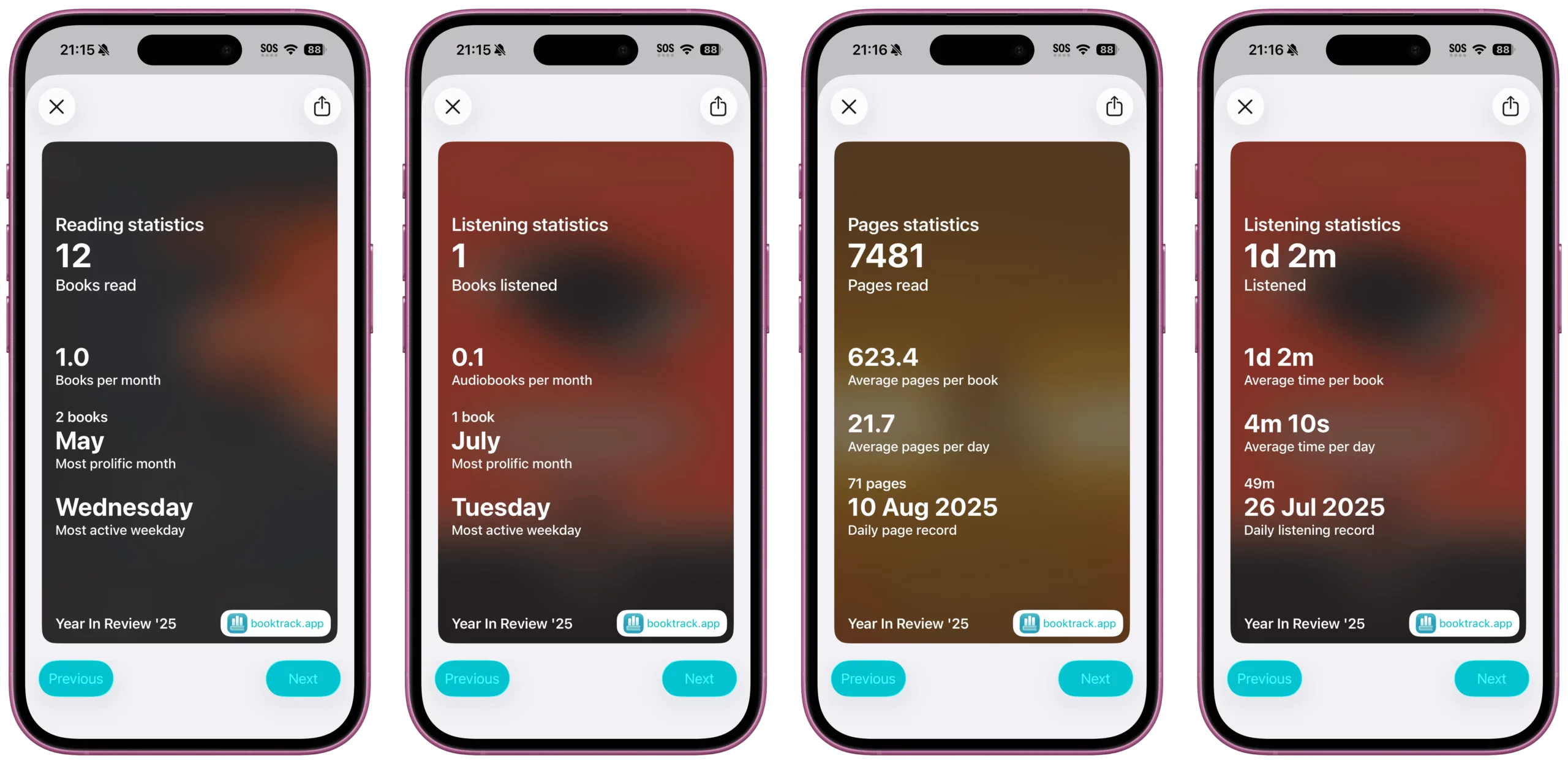 - Motivation & Goals: Seeing your page count and time spent reading rise provides crucial motivation to meet your annual reading challenges.